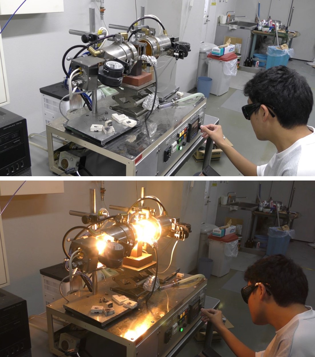 私は水に浮くほど軽い金属に関して研究しています。写真の水に浮いている金属をポーラス金属と言います。ポーラスと言うのは英語でporousと書きます。porousは穴だらけである状態を示す形容詞で、ポーラス金属は金属内部に多数の気孔をもつ金属材料です。ポーラス金属は超軽量であるだけでなく、断熱性、衝撃吸収性、制振性、吸音性のように一般的な緻密金属にはない優れた特性を持ちます。ポーラス金属は自動車の燃費向上のための軽量材料として注目されています。他にも自動車のバンパーなどにポーラス金属を導入すると、衝突時に衝撃エネルギーをポーラス金属が吸収するため、ドライバーにかかる負荷が減り安全性が向上します。未だ高価なためポーラス金属はあまり実用化が進んでいません。私はポーラス金属を安価に作製するためのプロセスを確立するために研究を行っています。素材コストを下げ,加工にかかる消費電力を抑えつつ、短時間で大量に高品質なポーラス金属を製造する方法を確立することは困難ですが、やりごたえがあり、楽しくもあります。