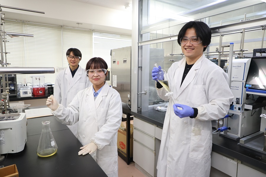 群馬大学理工学部の有機高分子化学研究室では、複数の分子を一度に結合させる「多成分連結反応」を用いて、新しい高分子材料を効率的に合成する研究を行っています。​この手法により、従来の方法では難しかった複雑な構造の高分子を短時間で合成できるようになり、医薬品や電子材料など、さまざまな分野への応用が期待されています。​また、研究室では合成した高分子の性質を詳しく調べるため、最先端の分析装置を活用して物性評価を行っています。​これにより、材料の性能を高めるための分子設計の指針を得ることができ、より高機能な材料の開発につながっています。​このような研究は、環境に優しい材料の開発や、エネルギー効率の高い製品の実現など、持続可能な社会の構築にも貢献しています。​分子レベルでのものづくりの魅力を感じられる研究分野です。